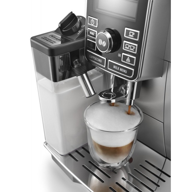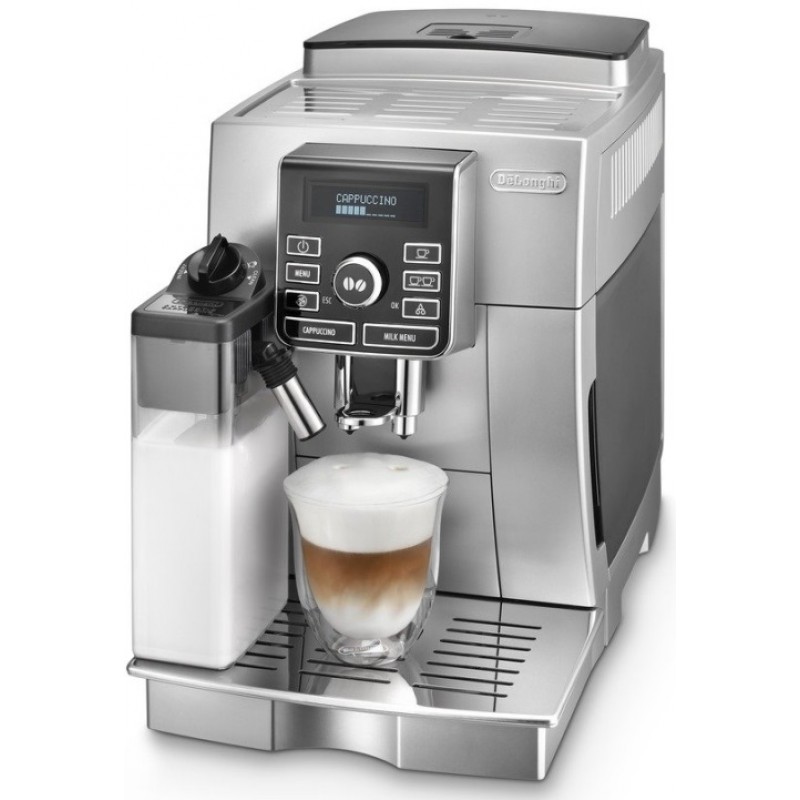 Kompaktný plnoautomatický kávovar pre cappuccino jedným stlačením vďaka LatteCrema System od spoločnosti De'Longhi: Pripravte si Vaše perfektné cappuccino stlačením jedného tlačidla. Okrem toho tlačidlo "moje mlieko" Vám dáva možnosť vybrať si z nápojov latte macchiato, caffelatte a mlieka. Vybavený 2-riadkovým displejom s možnosťou individuálneho nastavenia podľa toho, ako máte kávu najradšej, aktívnou nahrievaci plochou na šálky a vodným filtrom.