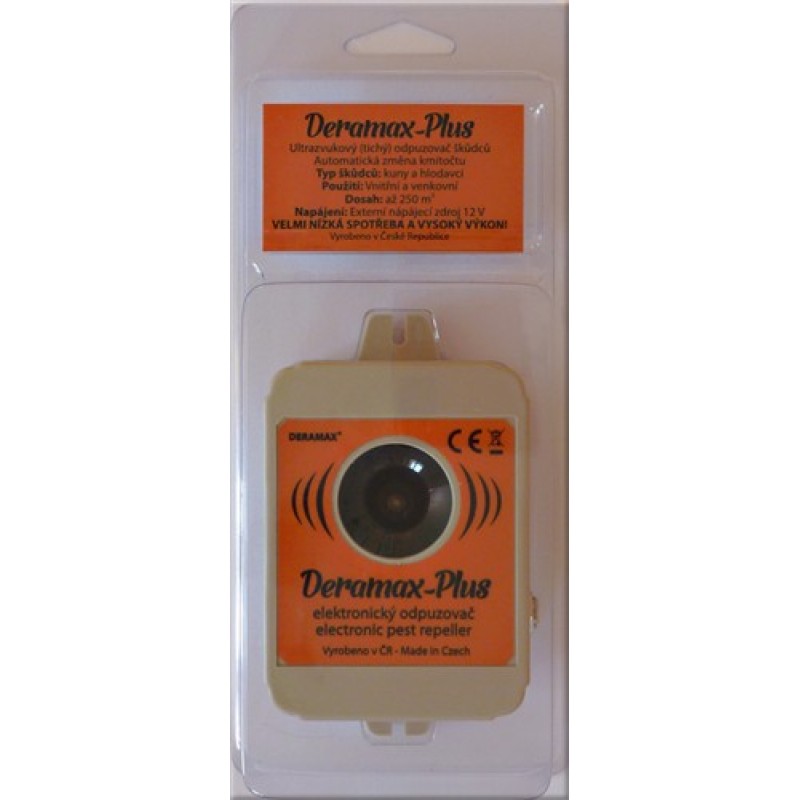 Odpudzovač-plašič Deramax-Plus slúži k ochrane priestoru v ktorom je umiestnený pred hlodavcami a kunami. Je teda možné ho využiť ako odpudzovač-plašič myší, potkanov, krýs, kún a lasičiek. Generuje špecifické ultrazvukové signály na vysokom ultrazvukovom kmitočte, ktoré sú pre drobné hlodavce a kuny veľmi nepríjemné, takže po krátkom čase chránený priestor opúšťa a hľadajú si nové útočisko v iných objektoch, ktoré nie sú chránené. Generované ultrazvukové signály majú automatickú zmenu kmitočtu v danom rozsahu, aby si hlodavce (alebo kuna a lasička) na signál nezvykli.