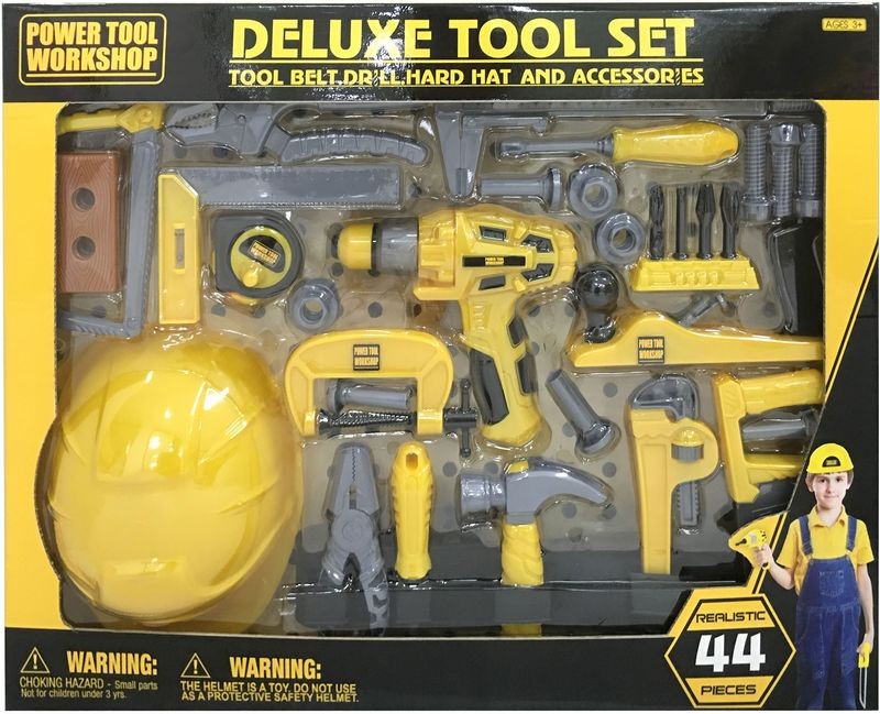 Sada náradia Deluxe G21 ukrýva celú dielňu! Touto krabicou plnou náradie zaručene potešíte každého malého domáceho majstra. Set obsahuje presnú kópiu náradie, ktoré má vo svojej dielni otecko alebo dedko.V sade nájdete vŕtačku s vrtáky, kľúče, skrutky, matky, kladivo, skrutkovač, zverák, píly, podložky na vŕtanie, meter, uhlomer, posuvné meradlo, kliešte, ochrannú prilbu a mnoho ďalšieho. Skrátka všetko, čo je v dielni potreba. Hra s náradím zlepšuje deťom motoriku, cvičí ich trpezlivosť a hlavne im prinesie veľa zábavy.