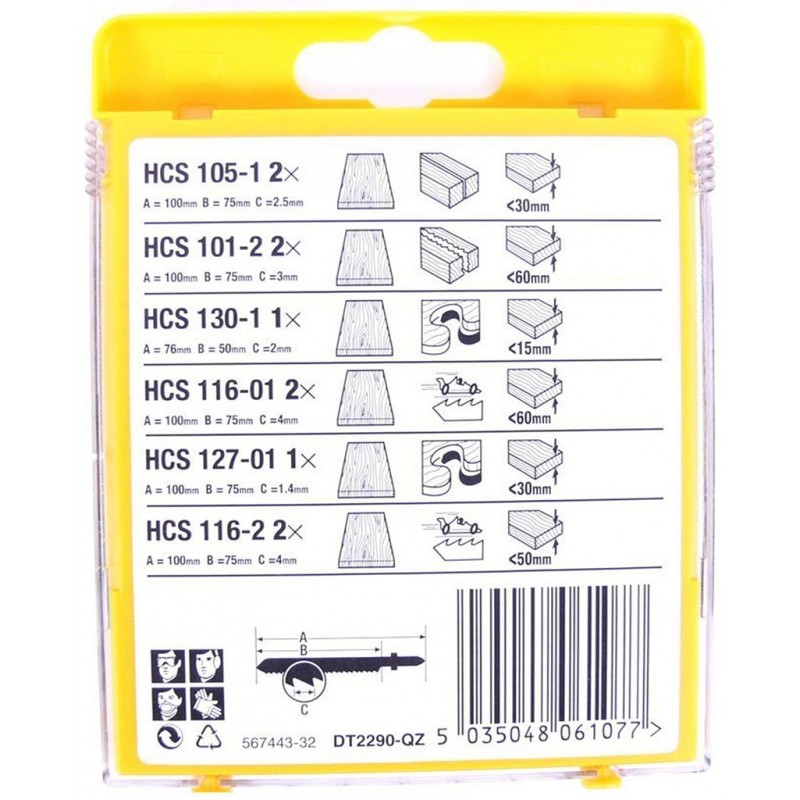 Sada obsahuje pílové plátky: DT2168, DT2206, DT2075, DT2211, DT2216, DT2213