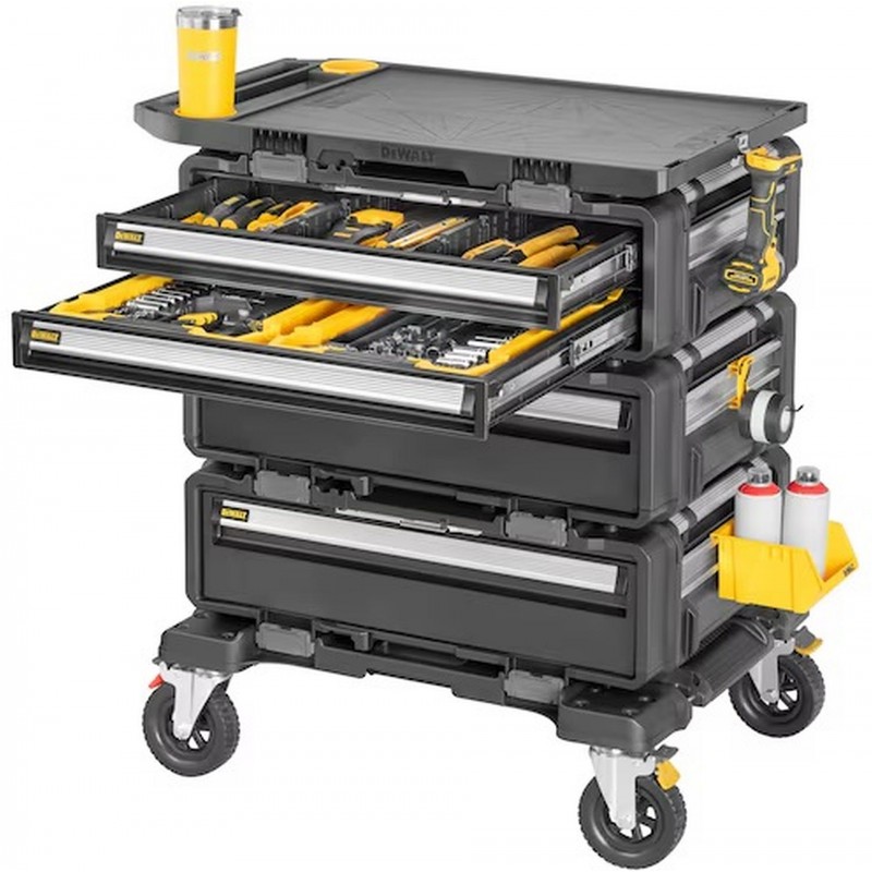 - PRISPÔSOBITEĽNÁ PRACOVNÁ STANICA – Vytvorte si osobnú pracovnú stanicu bezpečným umiestnením tejto jednotky na zásuvky TOUGHSYSTEM 2.0 DXL alebo akýkoľvek modul TOUGHSYSTEM 2.0 (predávajú sa samostatne).