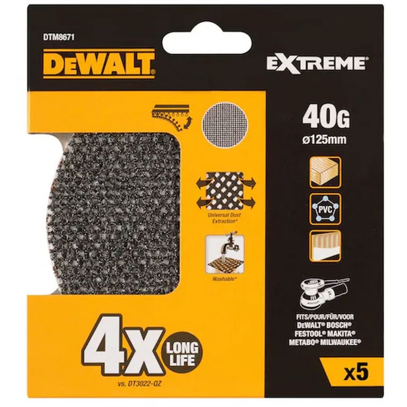 DeWALT DTM8671 – univerzálna brúsna sieťovina EXTREME ROS 125 mm, zrnitosť 40 (5 ks)