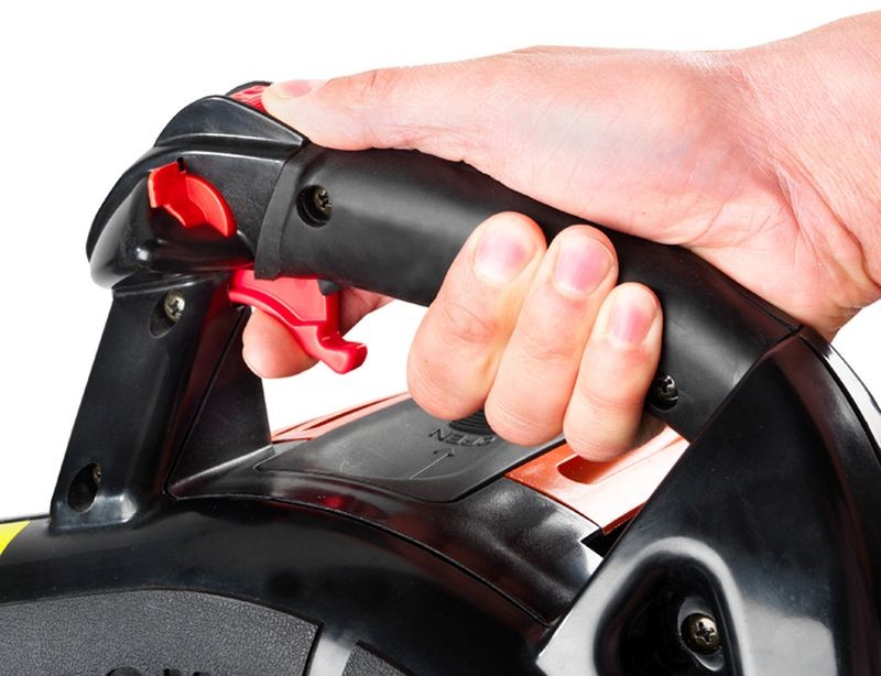 - Pogumovaná rukoväť s možnosťou prepnutia plynu na stály chod