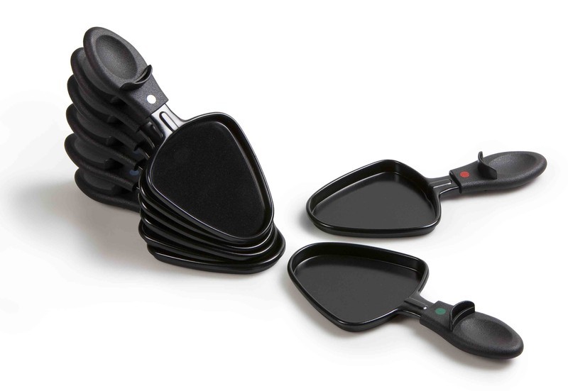 8 malých raclette panvičiek s nepriľnavým povrchom.
