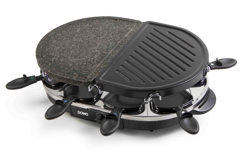 DOMO Raclette gril z prírodného kameňa / kov DO9059GRaclette gril z prírodného kameňa v kombinácii s kovovou grilovacou plochou určený až pre 8 osôb.