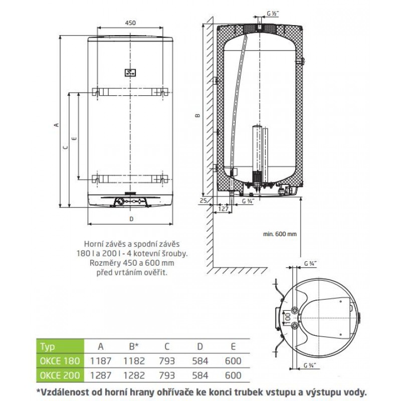 Elektrické akumulačné ohrievače určené pre zavesenie na stenu o objemoch 50-200 litrov. Rozteče kotevných skrutiek výrobca zachováva po celú dobu histórie výroby pre ľahkú výmenu vyslúžilých ohrievačov. Je možné tiež dokúpiť záves na rozostup kotvových skrutiek 350 mm.