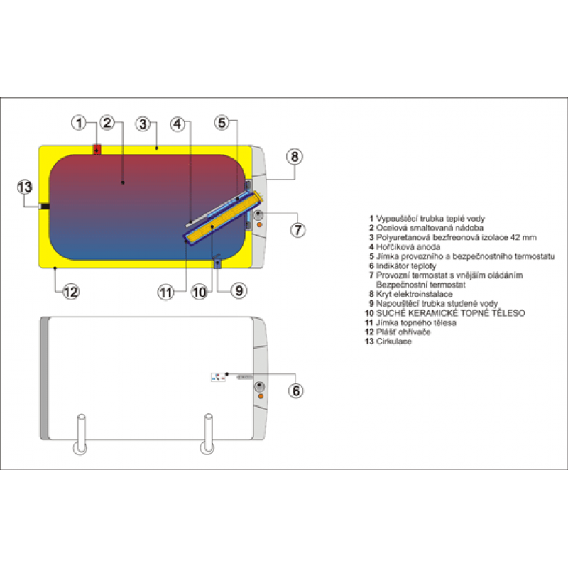 - Vykurovacie teleso s výkonom 4 kW a zapojením 3 PE-N 400 V/50 Hz - len u OKCEV 180 a OKCEV 200