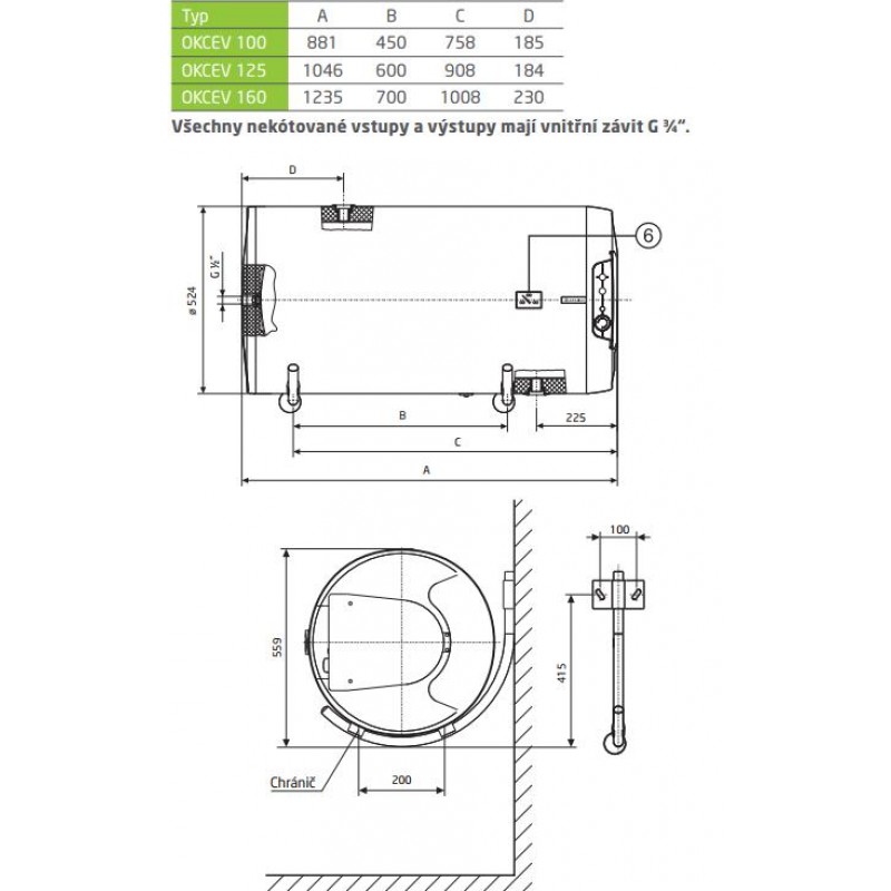 DRAŽICE OKCEV 160 Ohrievač elektrický 110630811Pracovná poloha-vodorovná