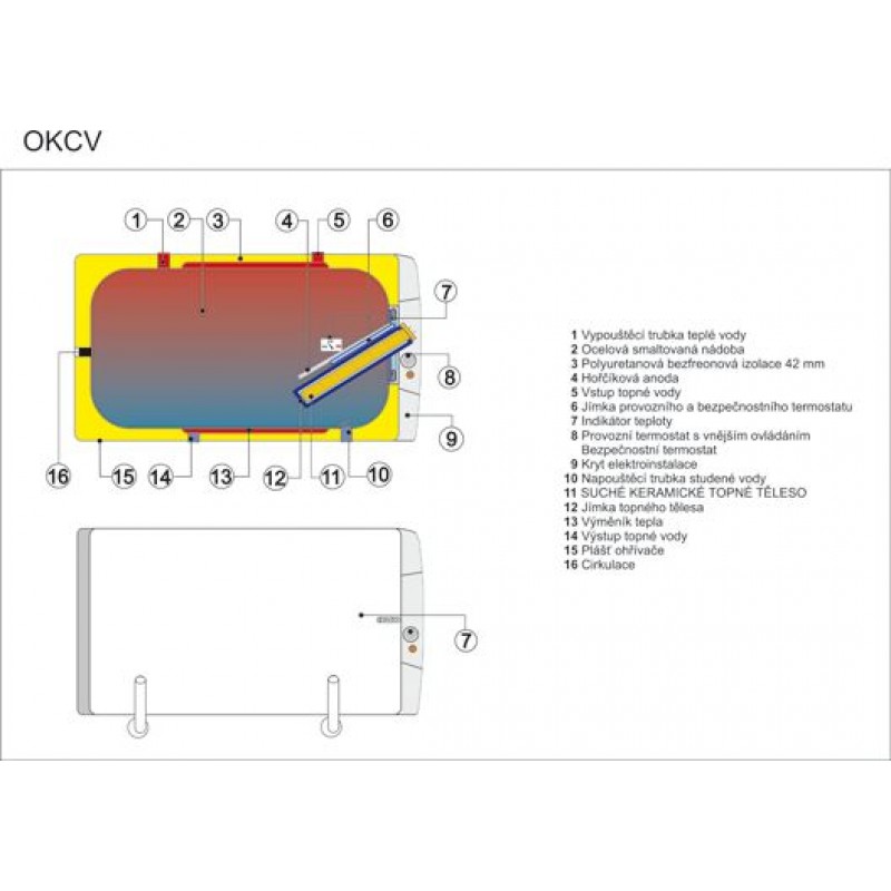 - Vykurovacie teleso s výkonom 4 kW a zapojením 3 PE-N 400 V/50 Hz - len u OKCV 180 a OKCV 200
