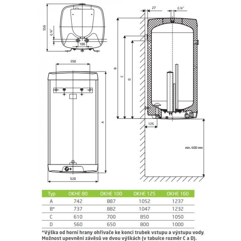 DRAŽICE OKHE 125 SMART Elektrický ohrievač s el. reguláciou 140311401Závesný inteligentný ohrievač vody s elektronickým termostatom as možnosťou pripojenia na HDO (znížená sadzba elektriny)! Pre zvislú montáž.