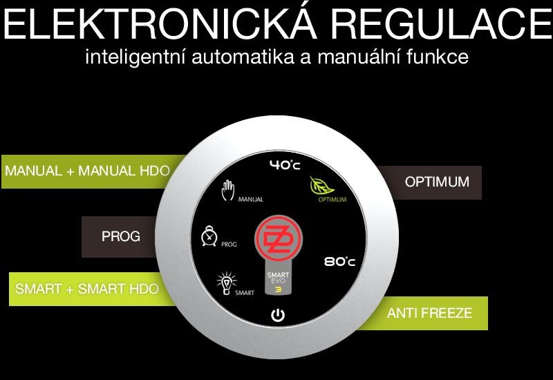 Vnútorná riadiaca jednotka je vybavená inteligentným termostatom SMART a prijímačom HDO (Hromadného Diaľkového Ovládanie). Rozlišuje vysoký a nízky tarif, podľa nastavenia kódu. Informácie o vysokom a nízkom tarife je možné využiť v režimoch MANUÁL a SMART. Užívateľ môže voliť jeden zo štyroch prevádzkových režimov uvedených v nasledujúcej tabuľke.