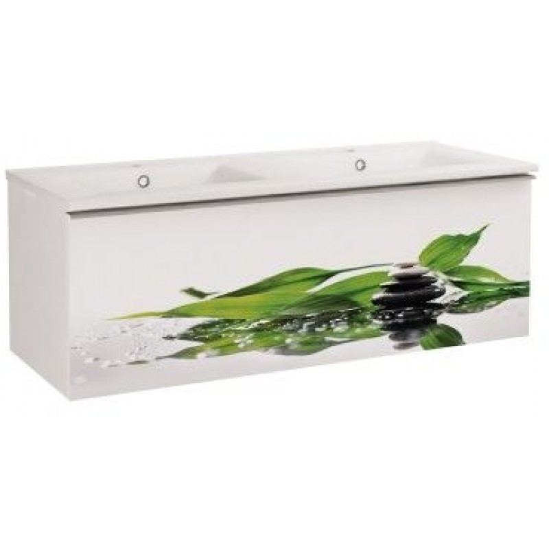 DŘEVOJAS IMAGE 120 závesná skrinka s umývadlom Slim 120, biela / bambusskrinka s dvojumývadlom Slim 120