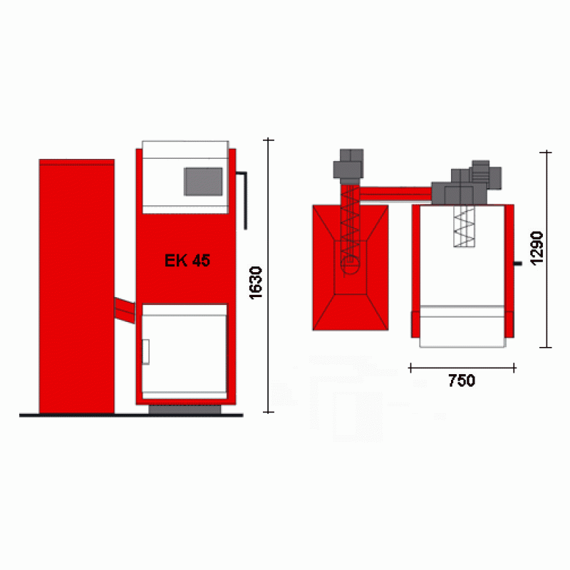 EDILKAMIN EK 45 kotol na pelety s oceľovou konštrukciou 631820Kotol na pelety EK 45 je určený na vykurovanie objektu prostredníctvom teplej vody vyrábané vo výmenníku ohniska, odkiaľ je pomocou čerpadla odvádzaná do jednotlivých radiátorov v celom dome. Výkon výmenníka kotla je max 45 kw. Ku kotlu je možné doobjednať zásobníky s obsahom 100, 400, 700 litrov, alebo textilné silá s obsahom 1, 3, 4,5 tony.