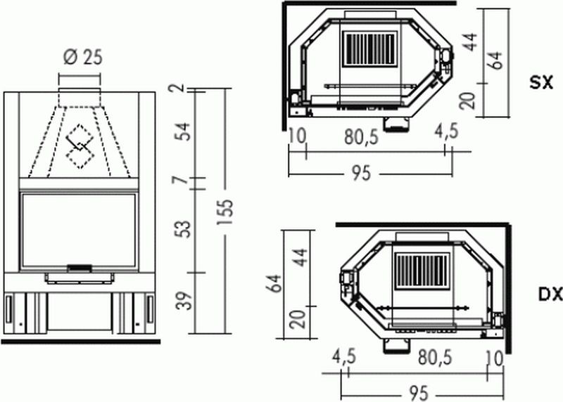 EDILKAMIN TEKNO 3 N prizmatické, krbová vložka, bez ventilátora 430690