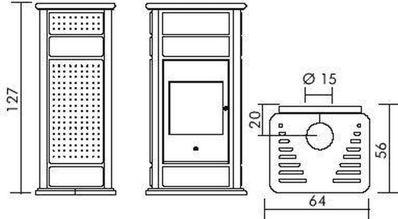 Predné , bočné a spodný diel z liatiny . Keramické sklo odolné šoku 800 ° C.