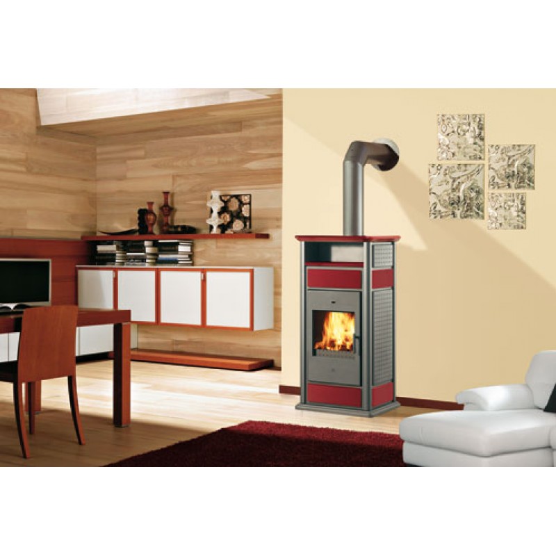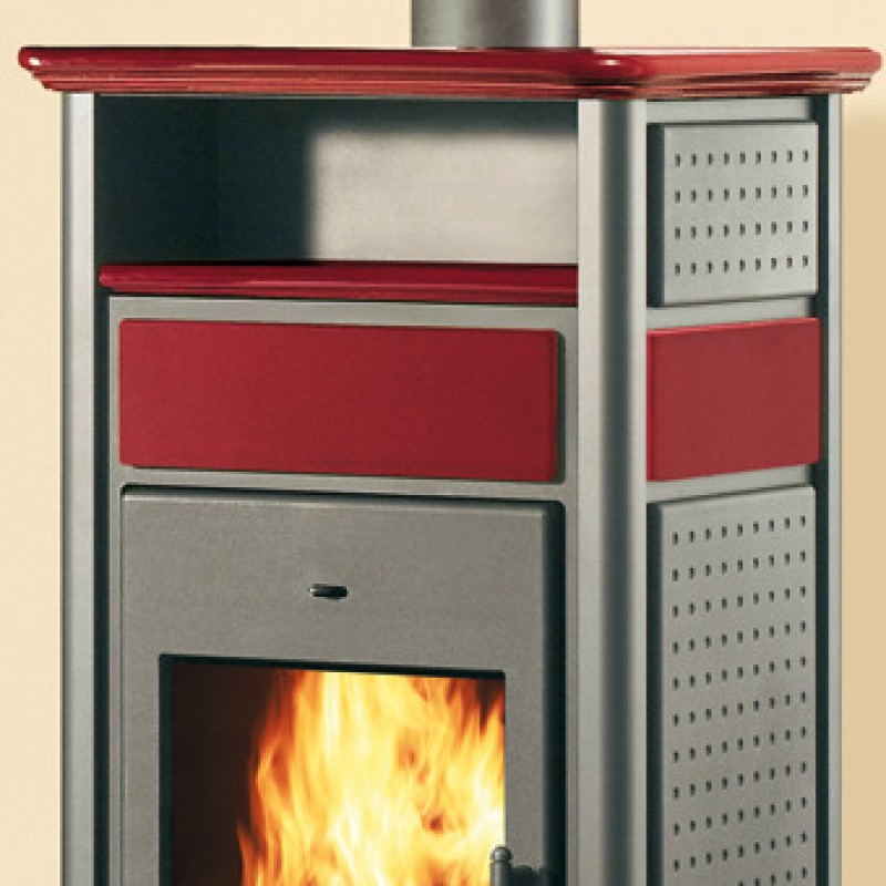 EDILKAMIN WARM krbové kachle na drevo verzie s ohrevom jedál, červené 293890