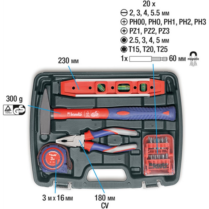 Einhell Kufor náradie 40 dielov KWB 370720Set 40 kusov náradia a nástrojov. Tento praktický set ponúka široké spektrum nástrojov. Ideálne pre začínajúcich živnostníkov, v praktickom plastovom kufríku pre ľahkú dopravu.