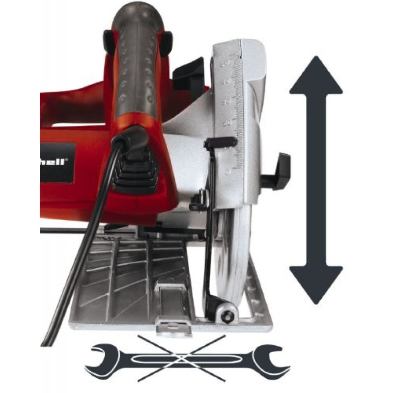 Einhell Ručná okružná píla RT-CS 165 4330910Táto ručná okružná píla Vám skvele padne do ruky vďaka svojej veľkej rukoväti. Reznú hĺbku a náklon pohodlne nastavíte bez použitia náradia. Kľúč na výmenu kotúča je prakticky uložený v základni píly. Kryt kotúča možno ľahko otvoriť bez použitia náradia.