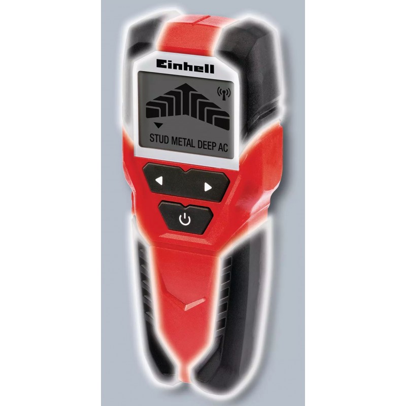 Digitálny detektor Einhell TC-MD 50 je nepostrádateľný pomocník pre domácich majstrov a remeselníkov: či už v dome, na stavbe alebo pri rekonštrukciách – digitálny detektor je spoľahlivý pri bezpečnom zisťovaní prvkov vo vnútri stien. Prístroj spoľahlivo odhalí kovy, drevo a elektrické vedenia v sadrokartóne: železné kovy, ako oceľ, a vedenia pod napätím sa detekujú do hĺbky 50 mm, neželezné kovy, ako meď, do 38 mm. Drevo sa detekuje do hĺbky 19 mm. Vďaka zvukovému varovnému signálu je obsluha jednoduchá a intuitívna. Ochranné klzáky vzadu chránia stenu a mäkký úchop umožňuje pohodlné ovládanie jednou rukou. Ak je digitálny detektor Einhell TC-MD 50 odložený, automaticky sa vypne po 1 minúte nečinnosti.