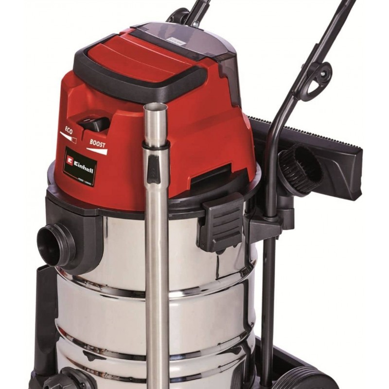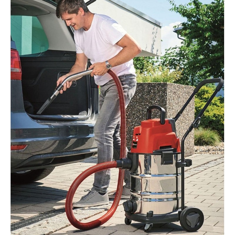 Akumulátorový mokro-suchý vysávač Einhell TE-VC 36/30 Li S-Solo je členom rodiny Power X-Change, na prevádzku sú potrebné batérie 2x18V. Dodávka prebieha bez batérie a nabíjačky. Vysávač ponúka vysoký sací výkon s bezdrôtovou slobodou a 2 rýchlosti (ECO/BOOST) na optimálne využitie batérie. Špinavú vodu je možné vypustiť pomocou vypúšťacej skrutky v nerezovej 30l nádobe z nerezovej ocele. Vysávač má veľké kolesá a valčeky, prípojku fúkania, chýbajúci regulátor vzduchu a držiak príslušenstva. Súčasťou dodávky sú 2 kusy. Sacie potrubie z nerezovej ocele a 2,50 m plastová sacia hadica, veľká kombinovaná/štrbinová/čalúnická hubica, penový a skladaný filter a papierové vrecko na zber nečistôt.