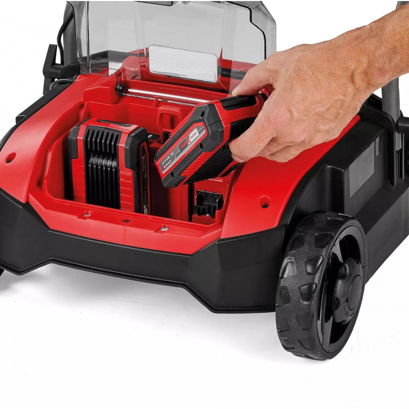 Zariadenie je poháňané bezuhlíkovým motorom Einhell PurePOWER. Tento bezuhlíkový motor ponúka vyšší výkon a dlhšiu dobu prevádzky než bežné motory s uhlíkovými kefkami. Po online registrácii poskytujeme na bezuhlíkový motor PurePOWER záruku 10 rokov. Úsporu miesta pri skladovaní zabezpečuje sklopná vodiaca lišta tohto vertikutátora/prevzdušňovača. Zariadenie je možné jednoducho prepravovať pomocou integrovanej rukoväti.