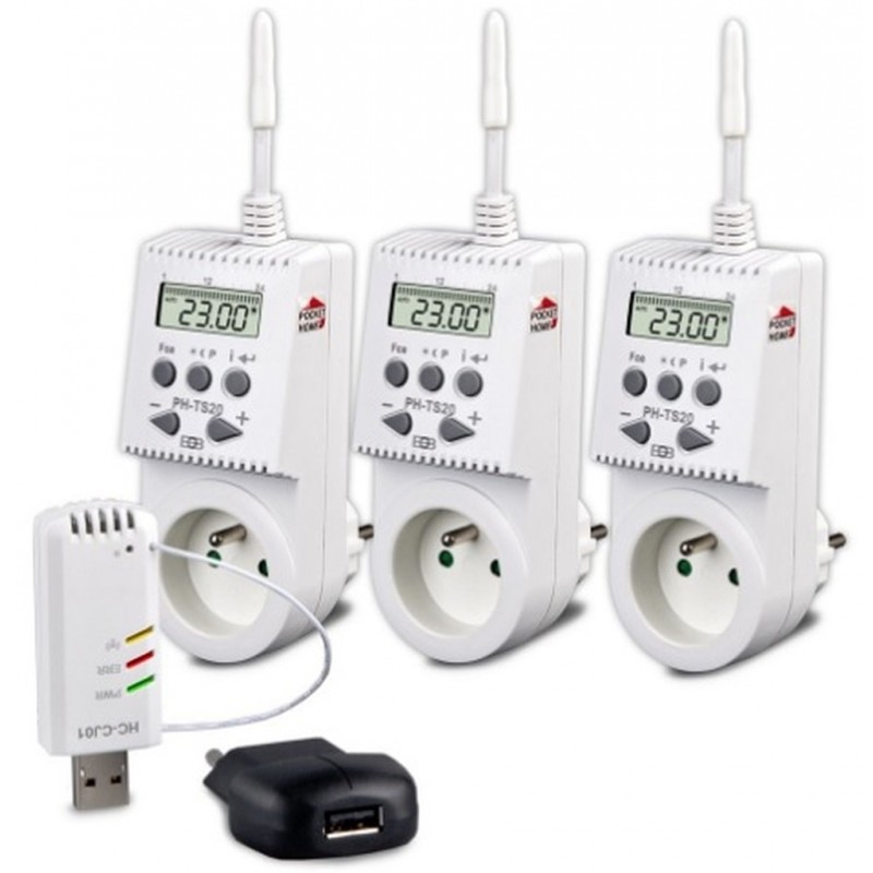 Set systému Home Control s troma tepelne spínanými zásuvkami slúži pre elektrické vykurovacie sústavy. Umožňuje nastaviť teplotu v celom dome alebo v jednotlivých miestnostiach, zistenie aktuálnych teplôt aj automatickú reguláciu podľa vopred nastavených programov.