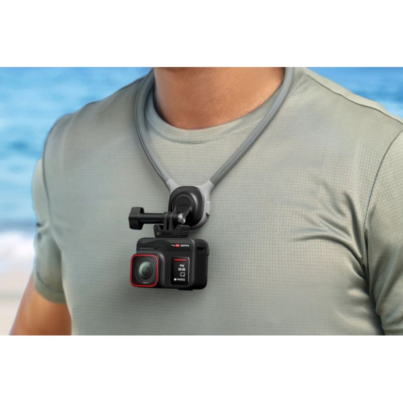 Pohodlný držiak na krk pre kamery Insta360 GO 3S, GO 3, GO 2, X4, X3, ONE X2, Ace Pro 2 a ONE RS (4K aj Twin edícia) umožňuje natáčanie z pohľadu prvej osoby bez použitia rúk. Má 360° otočnú základňu, rýchly uzamykací mechanizmus a mäkký, priedušný silikón pre celodenné pohodlie.