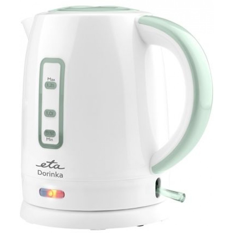 ETA Dorinka 1599 90010 je dizajnovo podarená varná kanvička v nezvyklom bielo-olivovom prevedení. Je vyrobená z plastu, ktorý znižuje riziko popálenia a ľahko sa udržiava. Pojme až 1,2 l vody a jej príkon 2200 W zaistí rýchle dosiahnutie bodu varu. Vykurovacia špirála je ukrytá pod nerezovým dnom. Pri plnení kanvice oceníte obojstranný ukazovateľ stavu vody, vyberateľný, umývateľný filter zamedzuje usadzovaniu vodného kameňa. Pre vašu ochranu je opatrená bezpečnostným výklopným viečkom, nechýba ani automatiku vypínanie pri dosiahnutí bodu varu, či bezpečnostné tepelnú poistku. Súčasťou kanvice je aj priestor pre navinutie prívodného kábla, ktorý tak neprekáža a zaberie menej miesta.