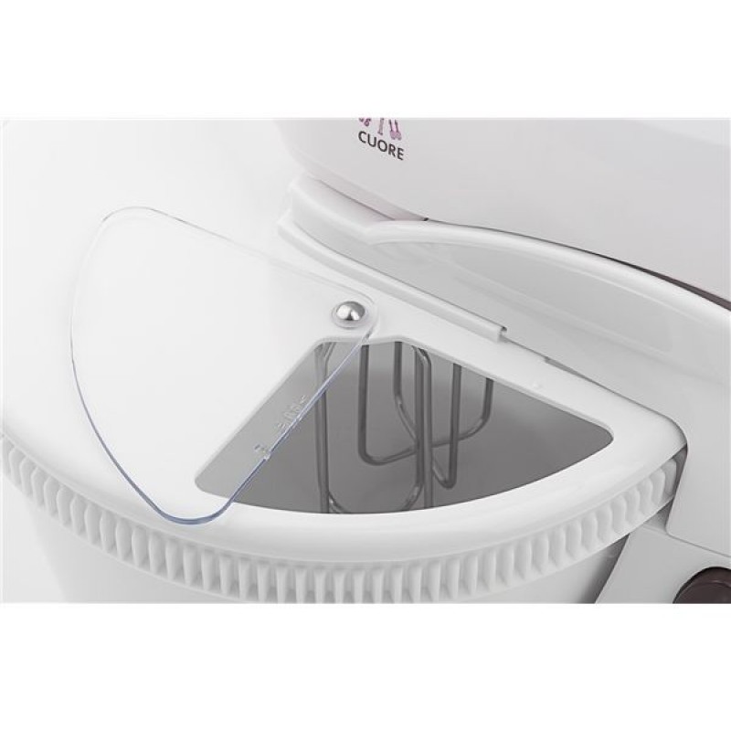 Cuore je moderná šľahač s elegantným dizajnom. Má rotačný misu a stojan, ktorý zaistí veľmi pohodlné použitie. Cuore sa dobre drží vďaka ergonomickej rukoväti a zostáva v stabilnej polohe práve vďaka stojanu s protišmykovými nožičkami.