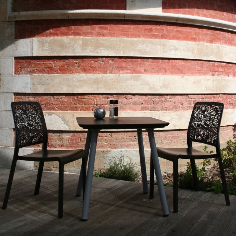 EVOLUTIF CHARLOTTE City záhradná stolička, tmavo sivá 17200302CHARLOTTE City je elegantná záhradná stolička, ktorá sa hodí aj do interiéru. Originálny dizajn operadla - mapa Paríža.