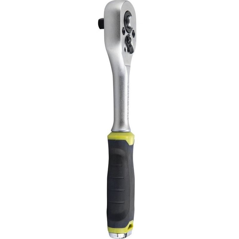 Všetky mechanické pracovné časti vnútri račne sú z CrV rukoväť v kombinácii tvrdého plastu s mäkkým gumovým gripom.