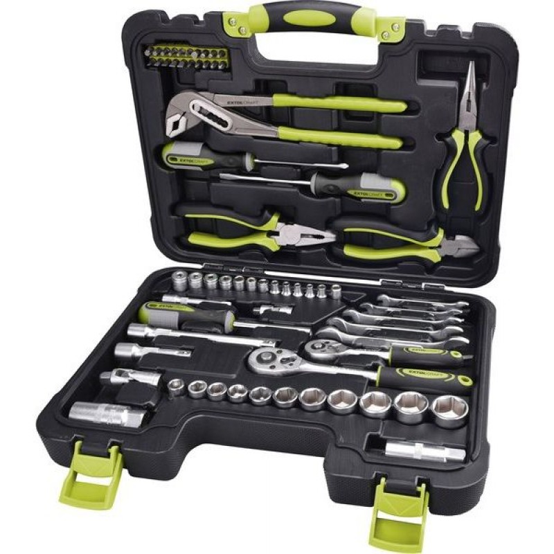 EXTOL CRAFT sada náradia 65ks, CrV, 1/4", 3/8" 6598Praktická sada náradia v počte 65 ks vyrobených z nástrojovej CrV ocele, ktoré sú uložené v praktickom prenosnom plastovom kufri