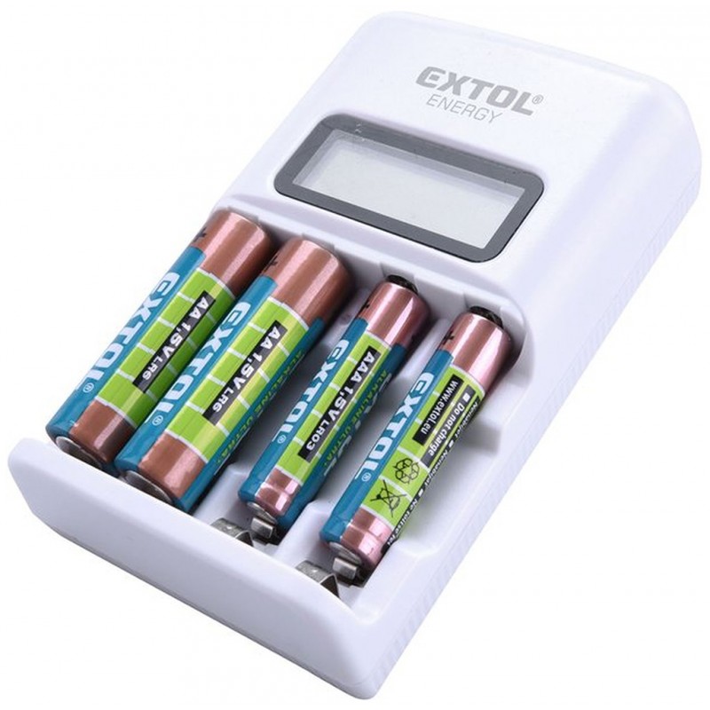 EXTOL ENERGY nabíjačka AAA / AA, NiMh / NiCd, 4 sloty, individuálne nabíjanie, LCD 42080