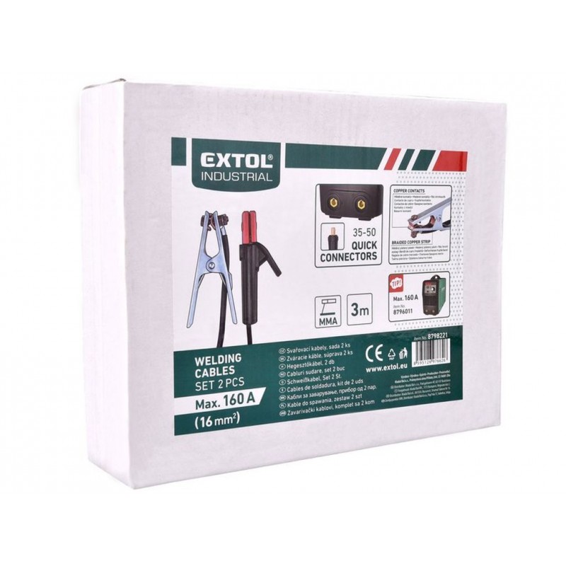 EXTOL INDUSTRIAL káble zváracie sada 2ks 8798221Káble zváracie, sada 2ks, 16mm2, 3m, 35-50, kliešte 200A