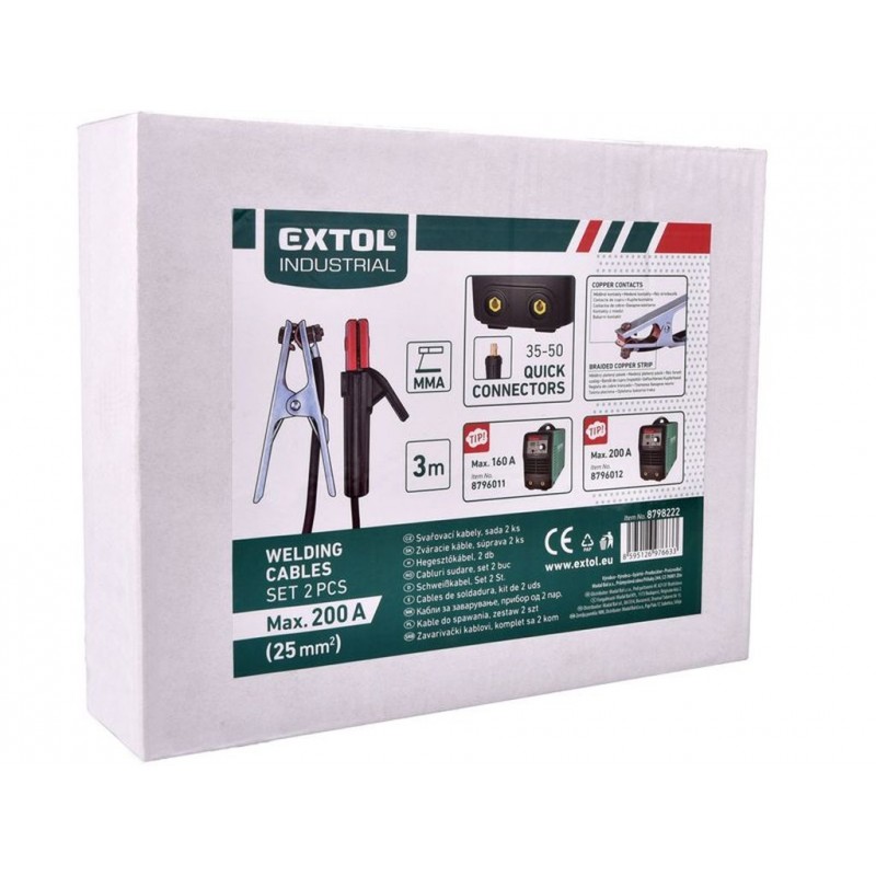 EXTOL INDUSTRIAL káble zváracie sada 2ks 8798222Káble zváracie, sada 2ks, 25mm2, 3m, 35-50, kliešte 200A