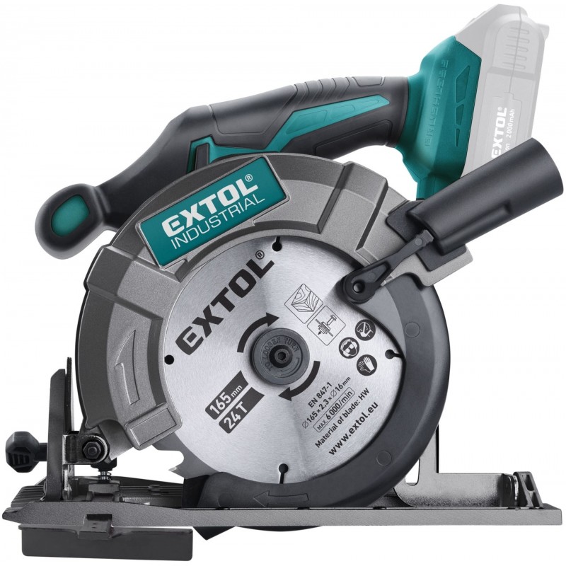 Brushless kotúčová píla je navrhnutá tak, aby užívateľom poskytla výkonné a ľahké rezanie pri rôznych inštalatérskych, elektrických, rámovacích, dokončovacích a tesárskych prácach. Píla je poháňaná najmodernejším "brushless" motorom s 3650 ot./min umožňuje používateľom rýchlo a ľahko rezať tvrdým materiálom. Tento nový typ motora má vyššiu životnosť, je výkonnejší a má menšiu spotrebu el. Energie ako klasické motory s uhlíkovými kefami. Horná a spodná kovový ochranný kryt poskytujú vynikajúcu ochranu kotúča pri páde. Gumová mäkká rukoväť je ergonomicky navrhnutá tak, aby užívateľom poskytovala vynikajúce pohodlie a vyváženie pre ľahko ovládateľné rezy. pre bežnú prácu postačujú jeden alebo dva 2000mAh akumulátory, ktoré môžete rýchlo nabiť v rýchlonabíjačke, pre náročnejších alebo dlhšej práci odporúčame väčšie akumulátory s kapacitou 4000mAh. akumulátor možno použiť vo všetkých typoch náradia radu EXTOL SHARE20V. Vďaka použitej Li-ion technológii je ho možné kedykoľvek dobíjať, bez toho aby sa tým znižovala jeho kapacita. Li-ion akumulátor stráca energiu vplyvom samovybíjania veľmi pomaly a vydrží dlho nabitý a pripravený na použitie.