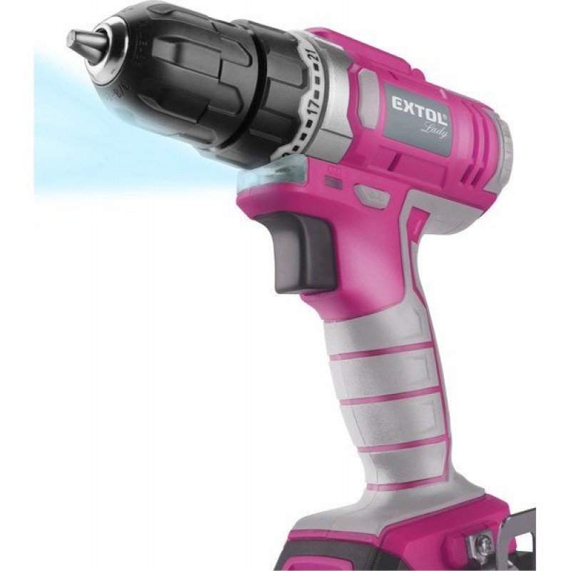 EXTOL LADY vŕtací skrutkovač aku, ružový, 12V Li-ion, 1300mAh, sada v taške 402401charakteristika: