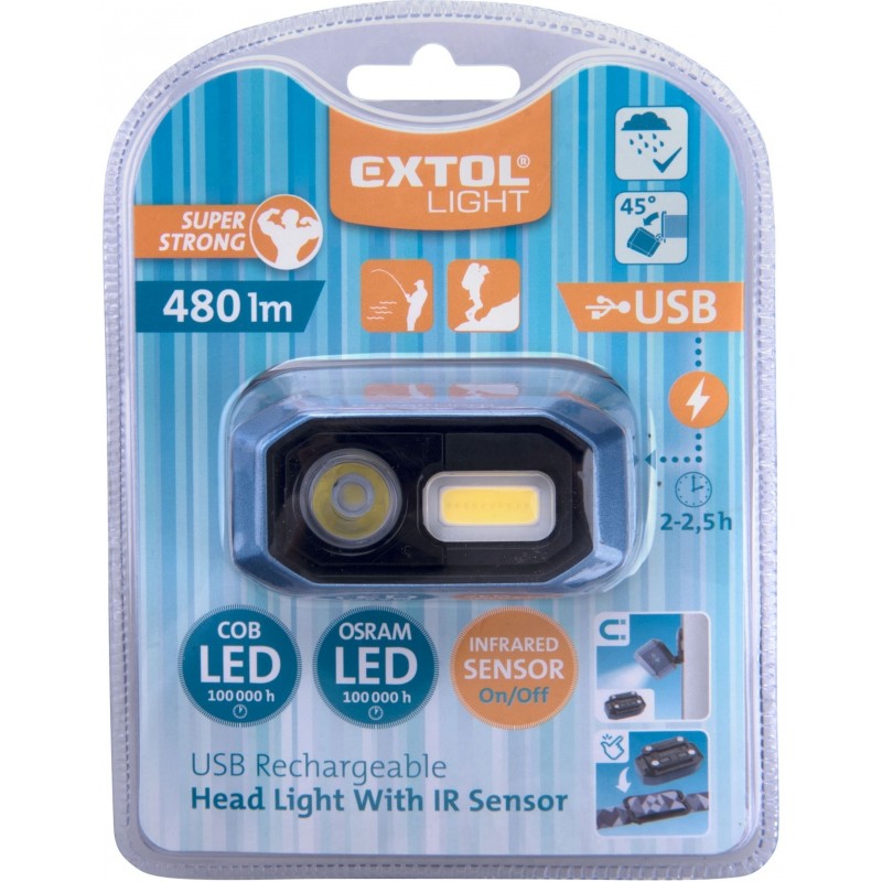EXTOL LIGHT čelovka 480L, nabíjací, USB, IR čidlo, OSRAM LED + COB LED 43183