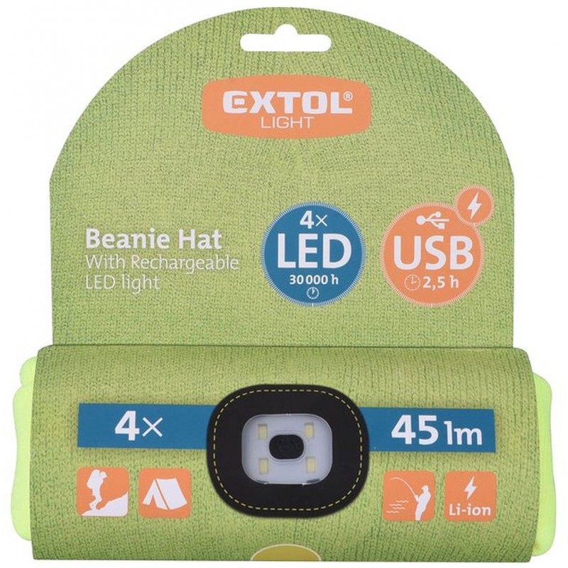 EXTOL LIGHT čiapka s čelovkou 45lm, nabíjací, USB, fluorescenčné žltá 43194