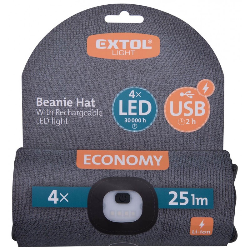 EXTOL LIGHT čiapka s čelovkou 4x25lm, nabíjací, USB, tmavo šedá, ECONOMY 43452