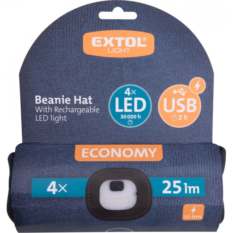 EXTOL LIGHT čiapka s čelovkou 4x25lm, USB nabíjanie, tmavo modrá, ECONOMY, 43456