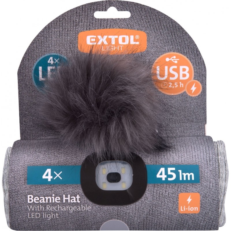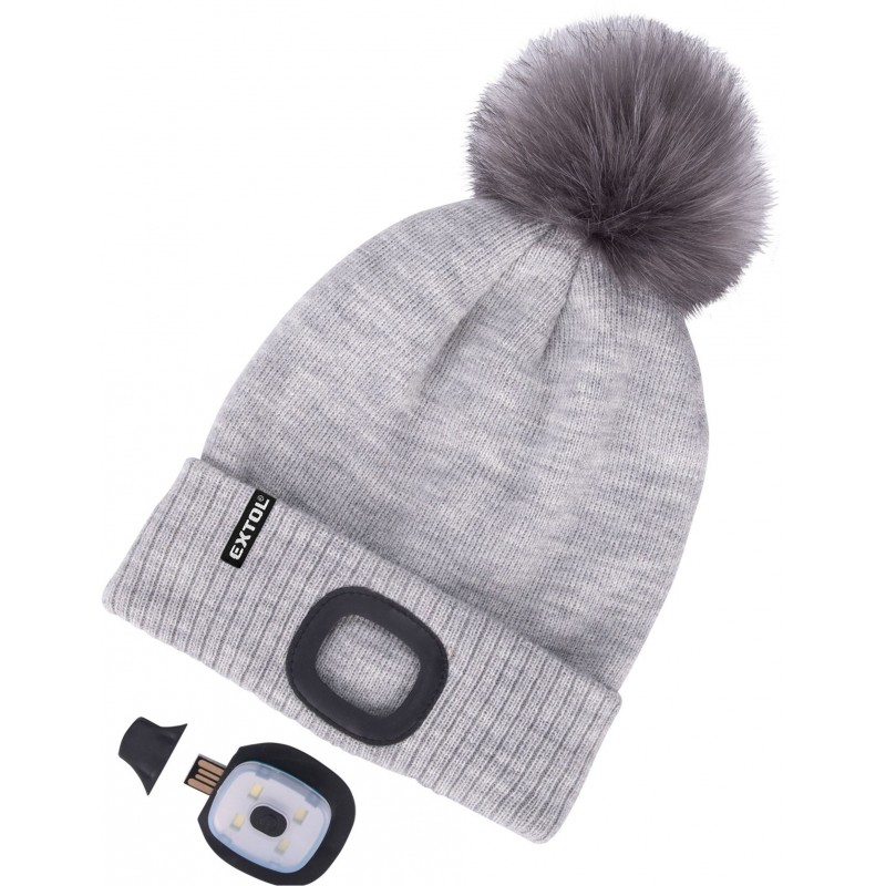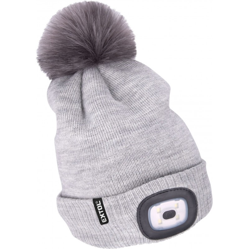 EXTOL LIGHT čiapka s čelovkou 4x45lm, USB nabíjanie, svetlo šedá s brmbolcom, 43465