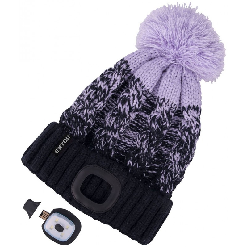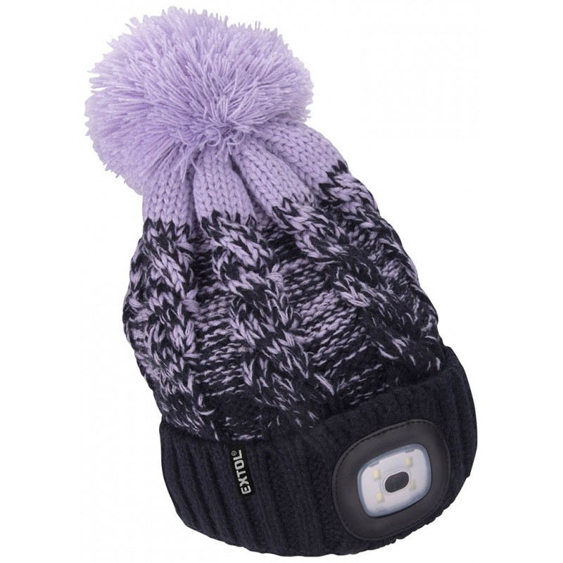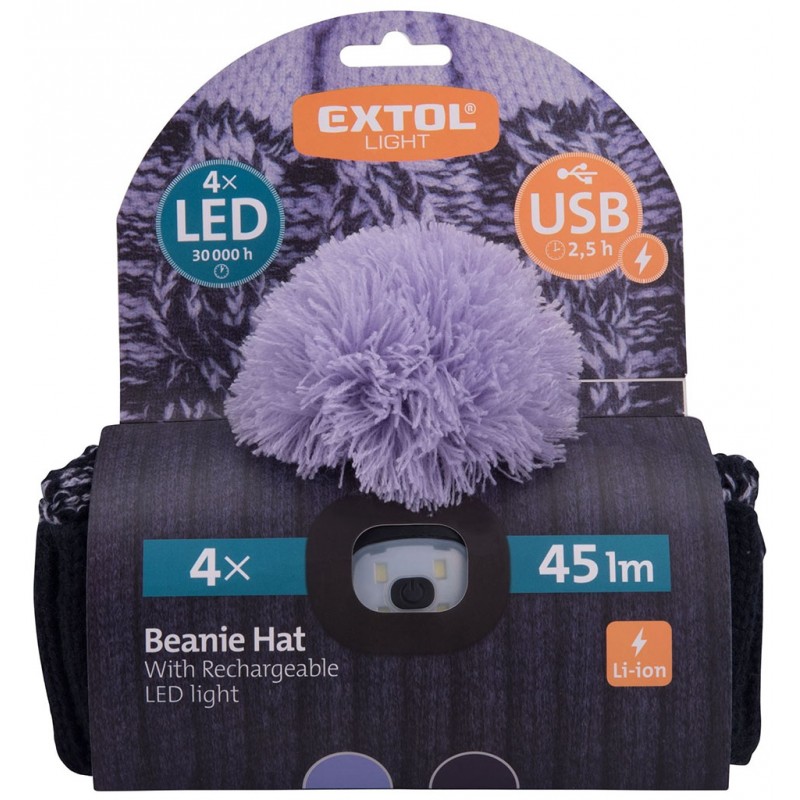 EXTOL LIGHT čiapka s čelovkou 4x45lm, USB nabíjanie, tmavo modrá/fialová s brmbolcom 43466