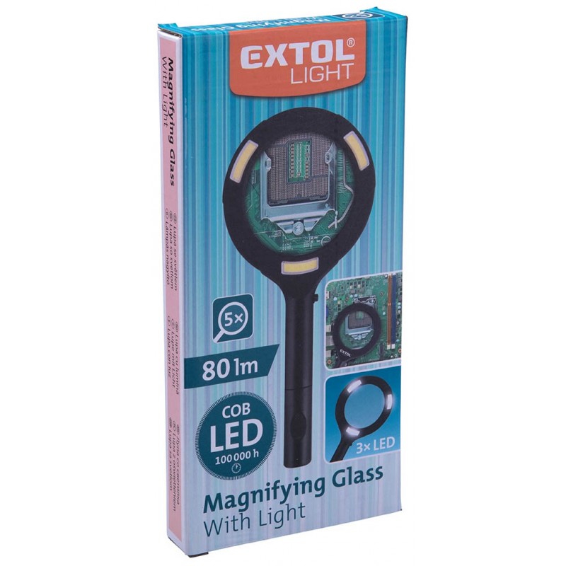 EXTOL LIGHT lupa so svetlom 80lm, 5x zväčšenie, 3x0,5W COB LED 43159