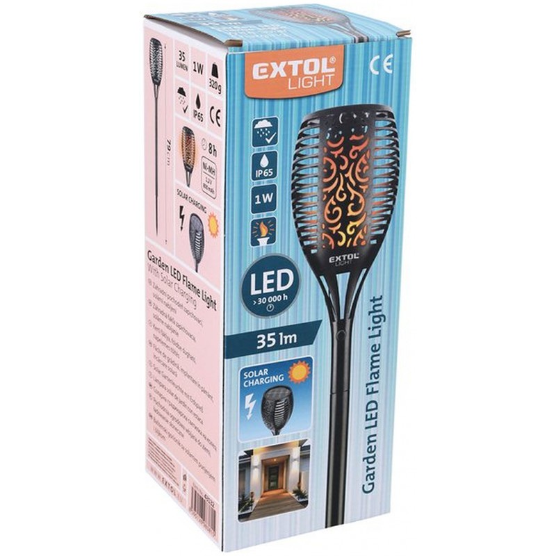 EXTOL LIGHT pochodeň LED s plameňom, 79cm, solárne nabíjanie, 35lm 43132