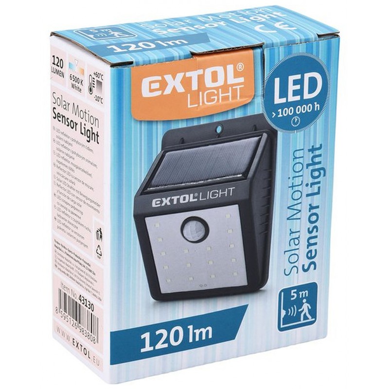 EXTOL LIGHT svetlo nástenné s pohybovým čidlom, 120l, solárne nabíjanie 43130