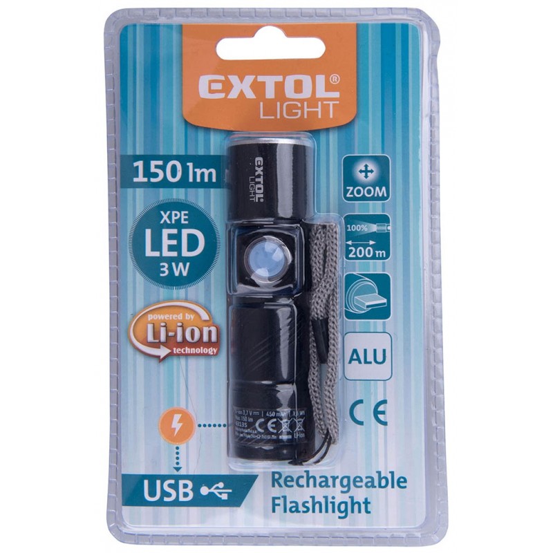 EXTOL LIGHT svietidlo 150l, nabíjací, USB, zoom, XPE 3W LED 43135