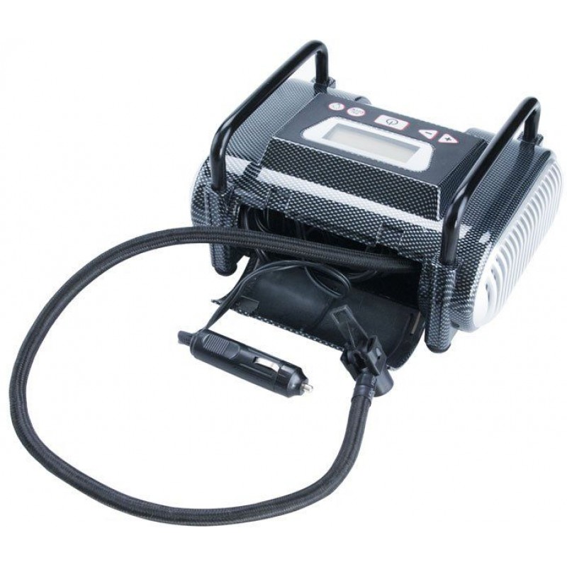 12V DC cigaretová zástrčka, 2,8m kábel, 65cm plniace hadice, výstražné svetlo, LCD podsvietený displej