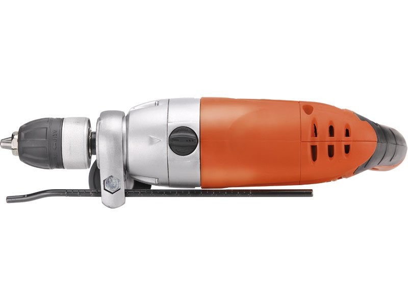 Výkonná príklepová vŕtačka s prevodovkou v kovovej skrini a rýchloupínacím skľučovadlom pre vŕtanie veľkých priemerov v murive a dlaždiciach, napr elektrikárske krabice atď.