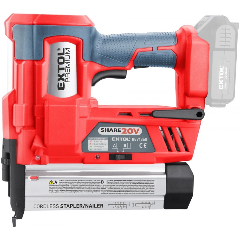 EXTOL PREMIUM klincovačka/sponkovačka aku SHARE20V,20V Li-ion,bez batérie nabíjačky8891861